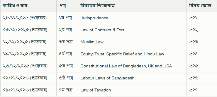 এলএল.বি ১ম পর্ব পরীক্ষার বিস্তারিত সময়সূচি