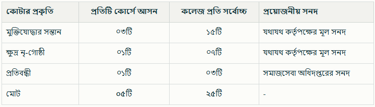 মাস্টার্স (প্রফেশনাল) ভর্তি কার্যক্রমে চার ধরনের কোটা রয়েছে: