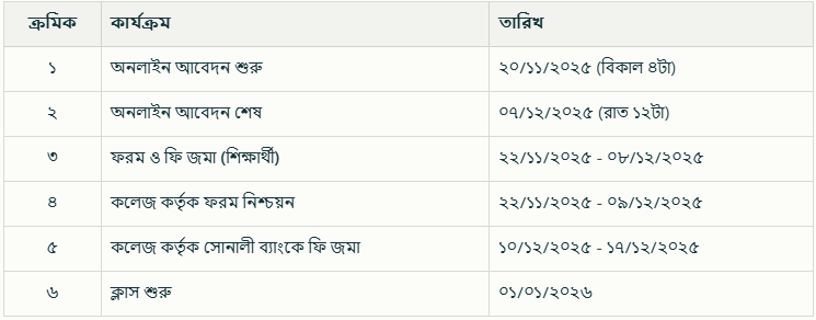 সম্পূর্ণ ভর্তি সময়সূচি (Timeline)